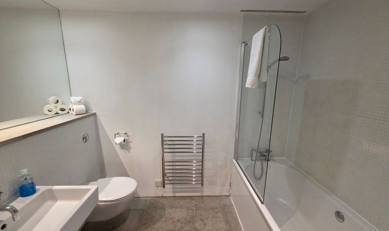 Completely refurbished approximately 3 years ago with a white suite comprising low level wc, bidet, wall mounted circular wash hand basin with mono-bloc mixer taps over,