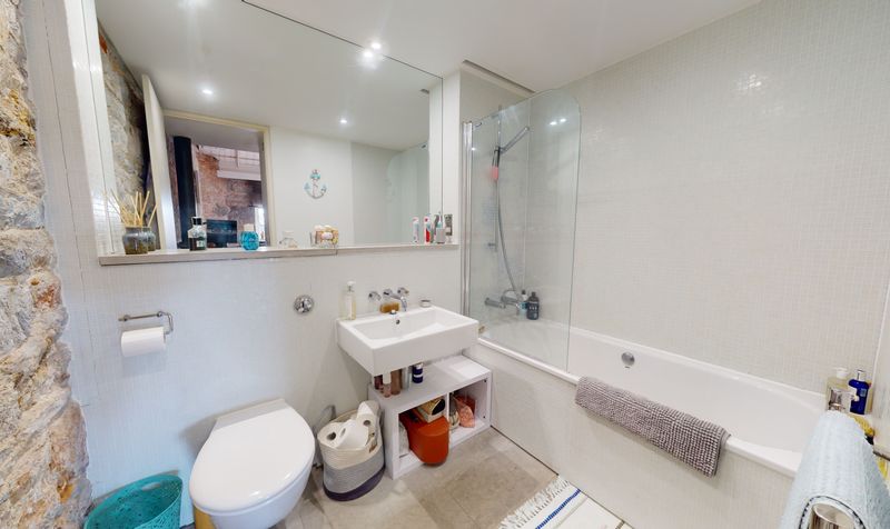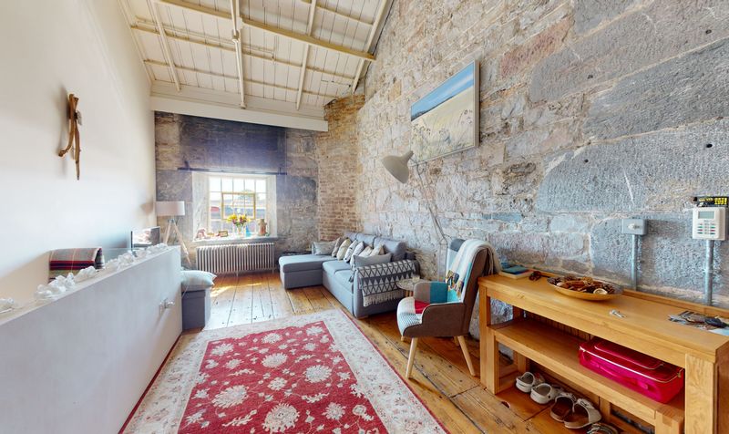 Entry to the building is via a secure glass door leading to the entrance lobby. Stairs give access to the second floor where you will find the entrance to the apartment. Entrance through double doors leads to the open plan living room and kitchen. The living room has a window with window seat looking down through the yard and has original floorboards, feature stone and red brick walls. The Kitchen offers base and wall mounted units with integrated fridge, freezer and oven with electric hob over. There is a utility cupboard which houses the boiler and a washing machine. The bathroom has a suite comprising a panel bath with shower over, tiled splash backs, W/C, vanity wash hand basin and heated towel rail.