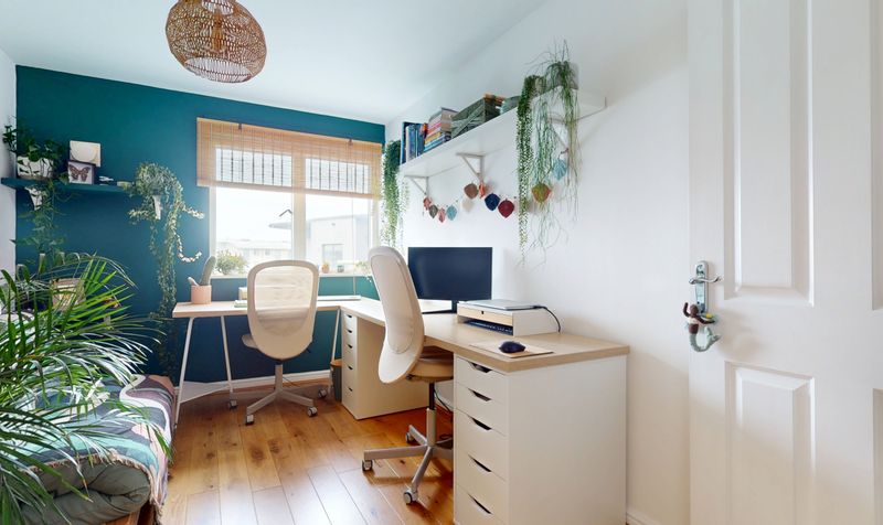 The stylish kitchen is equipped with modern units and integrated appliances, while decorative pendant lighting and a welcoming dining area create the perfect setting for entertaining. Both bedrooms deliver comfort and serenity, featuring wooden flooring, decorative window treatments, and ample natural light. The main bathroom presents a luxurious walk-in shower, illuminated mirror, and integrated storage, complemented by a second bathroom with contemporary fixtures. A dedicated home office setup caters to remote work needs, and plentiful integrated storage ensures a clutter-free environment. This apartment is a rare opportunity to secure a scenic, modern home with every convenience. Contact us today to arrange your viewing or request more information. Please note, images are representative and for illustrative purposes only.