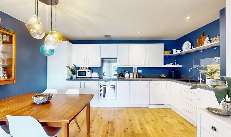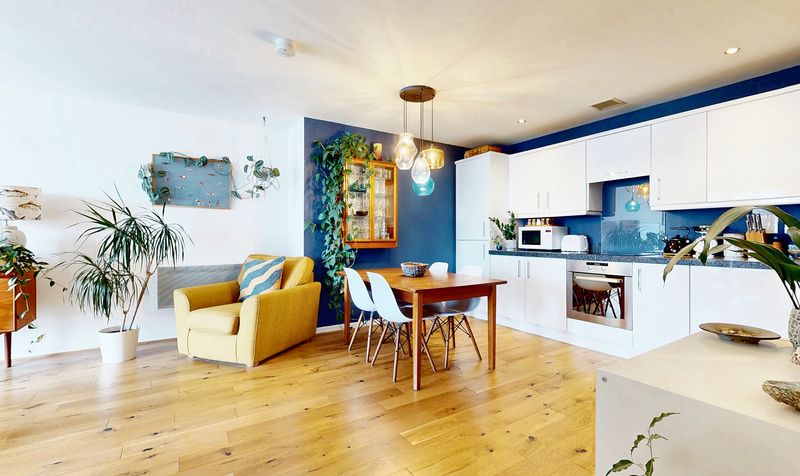 Experience contemporary city living in this exquisite two-bedroom, two-bathroom apartment, perfectly positioned in an elevated spot boasting beautiful views over to mount batten and beyond. The generous open plan reception area is bathed in natural light from expansive windows, seamlessly connecting the sleek modern kitchen, dining, and living spaces – all united by elegant wooden flooring. With its aspirational design and picturesque outlook onto the waterfront, this apartment offers an inspirational retreat for those seeking both relaxation and sophistication.