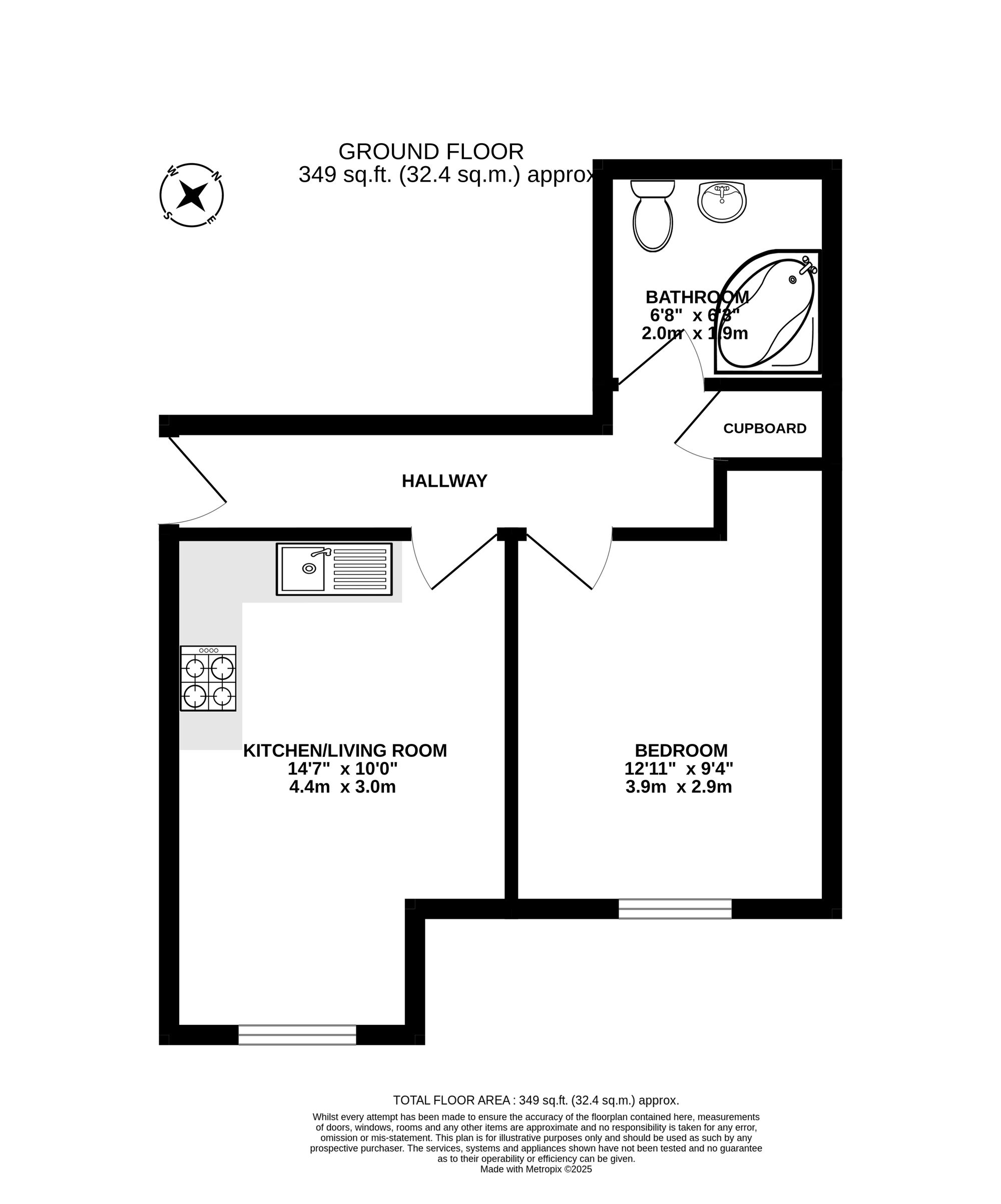 Double glazed window to rear evaluation, matching wall and base mounted units with laminate roll top worksurface over. Stainless steel sink and drainer unit, brickwork style tiled splash blacks. Integrated oven and hob with extraction. Space and plumbing for a washing machine and dishwasher, space for free standing fridge freezer. Kitchen space flows directly into the lounge area which offers ample of space for lounge furnishings.