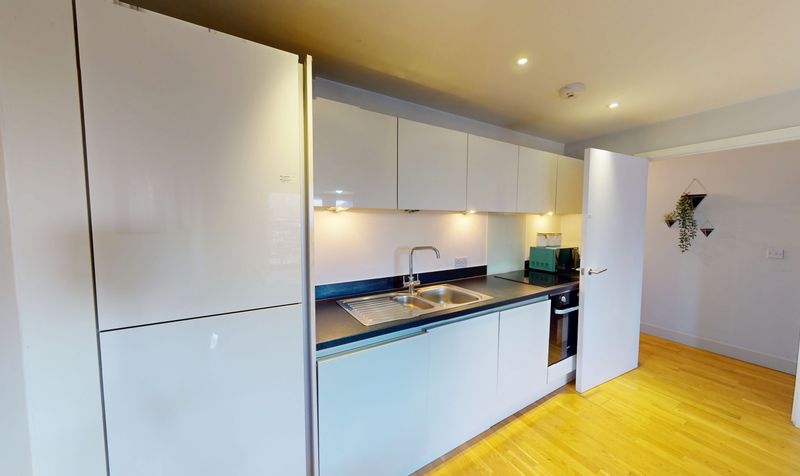 Step into this bright and modern one-bedroom apartment, fully furnished and ready for you to move straight in. The open-plan living and kitchen area is perfect for relaxing or entertaining, with large windows letting in plenty of natural light and sliding doors opening onto your own private balcony. The sleek kitchen comes equipped with integrated appliances and plenty of storage, making meal times a breeze, and the spacious double bedroom features a built-in wardrobe for all your essentials. The bathroom is finished to a high standard with contemporary fittings and a full-sized bath with shower over. You’ll also enjoy the convenience of private parking, so coming home is always stress-free, and lift access means no more struggling with heavy bags. This apartment is ideal for professionals or couples looking for a stylish, low-maintenance home in a great location, with everything you need right on your doorstep.