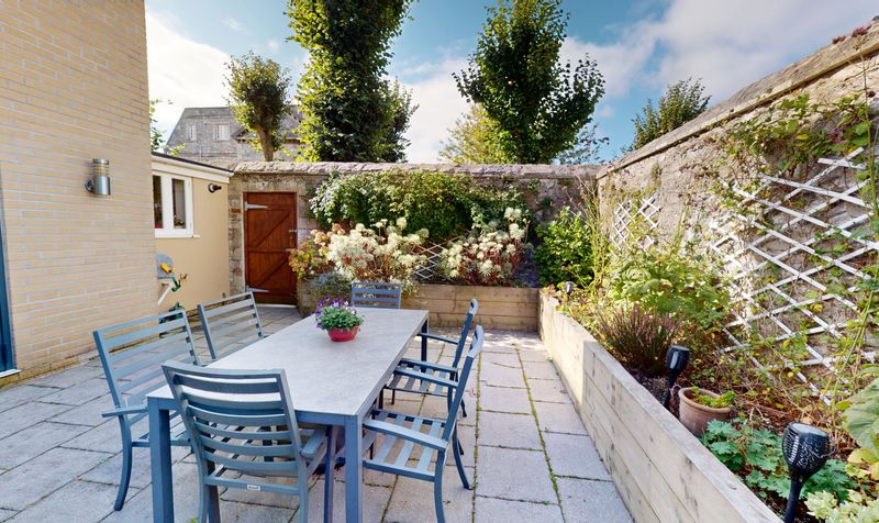 Outside, the private walled gardens provide a serene retreat and a sense of exclusivity. The carefully landscaped space offers areas for outdoor dining, relaxation, and gardening, with well-maintained borders and mature planting adding colour and texture throughout the seasons. The bi-folding doors from the kitchen open directly onto the patio, creating a perfect extension of the indoor living space.