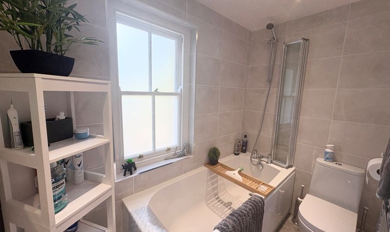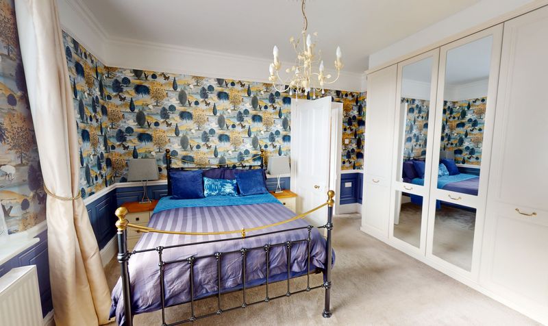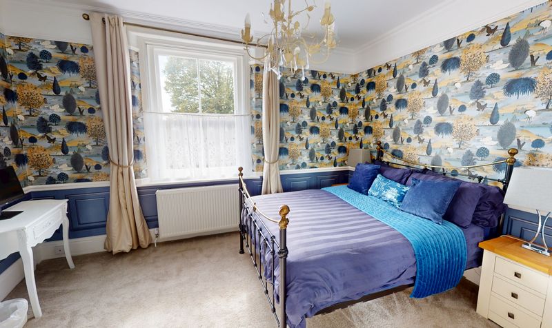 Bedrooms two and three are both generous double rooms, each offering built-in furniture, front-facing windows, and a continuation of the home’s elegant styling. These rooms are ideal for family members, guests, or as flexible spaces for hobbies or working from home. The careful preservation of period features, combined with soft modern décor, creates a timeless yet comfortable feel throughout.