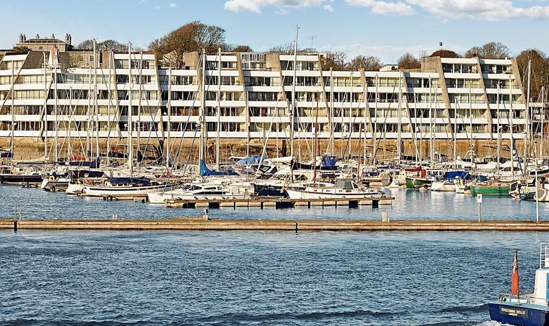 This attractive two bedroom apartment is situated on the second floor of a sought after waterfront development. It features a south facing balcony and a generous terrace, both offering impressive views over the marinas and out to sea. The open plan living and dining area creates a welcoming space for relaxing or entertaining, complemented by a well equipped kitchen. The property also includes a cloakroom, an en-suite, and two comfortable bedrooms. Parking is available at an additional cost, providing both convenience and security.