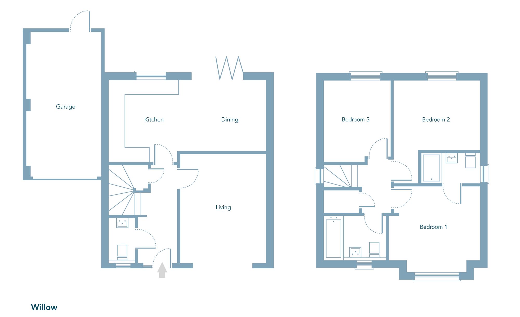 Plot 67 The Willow is a wonderful 3-bedroom detached home, nestled within the Highfield Park development in Bodmin. Comprising three double bedrooms, including an en-suite shower room to the main bedroom, this property provides ample space for family living. The heart of the home is the kitchen/dining room, featuring stunning bi-fold doors that seamlessly connect the indoor and outdoor spaces. Integrated appliances to include 5 ring gas hob, double oven, dishwasher and washing machine. The underfloor heating to the ground floor adds modern convenience and comfort. The living room offers a perfect retreat for relaxation. Outside, a lovely size southerly rear garden with a patio beckons for al fresco dining and entertaining. With a garage and drive, there is no shortage of parking and storage space.