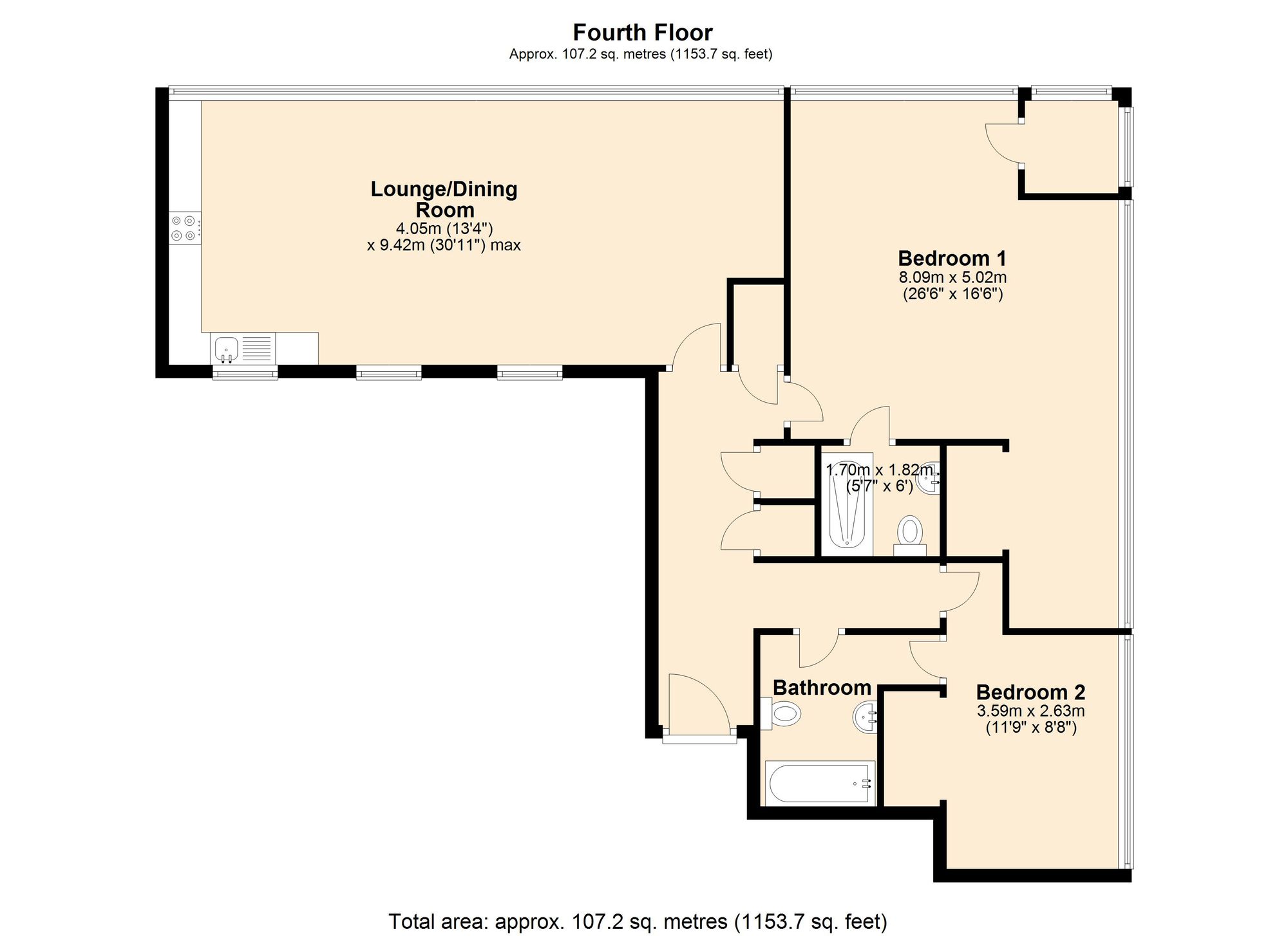 The interior is light-filled and contemporary, with sleek finishes and large windows that really make the most of those city views. Both bedrooms are generously sized, with the main bedroom featuring its own stylish ensuite for that extra touch of privacy and convenience, while a separate family bathroom adds flexibility for guests. You’ll find air conditioning throughout, so you’re always comfortable whatever the weather, and there’s a compact decked balcony that’s perfect for your morning coffee or evening wind-down.